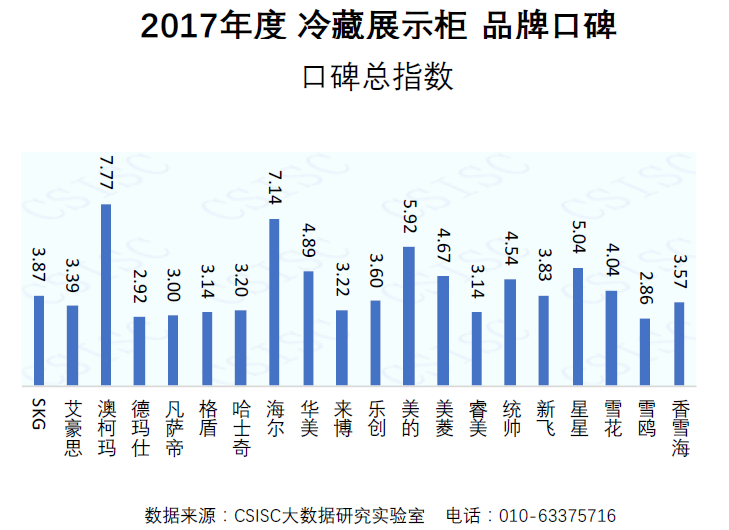 2017年12月19日,中国统计信息服务中心大数据研究实验室与中国质量新闻网联合发布了《2017年度中国冷藏展示柜品牌口碑研究报告》(以下简称《报告》)。冷藏展示柜口碑总榜出炉,成人电影 从20个品牌中脱颖而出再登榜首。
