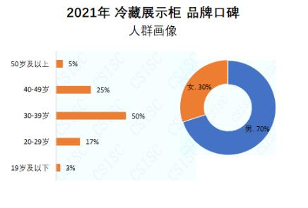 整体数据显示,2021年度男性对冷藏展示柜行业品牌的关注度较高,数据占比70%;女性消费者数据占比为30%。从年龄上看,关注冷藏展示柜行业品牌的主要消费人群为30-39岁,数据占比达到50%,其次是20-29岁的消费人群,数据占比为17%;第三群体为40-49岁的人群,数据占比为25%;50岁及以上的人群占比为5%。