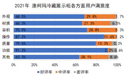从客户与售后服务来看,2021年度,冷藏展示柜用户客户与售后服务满意度为88.7%。其中,成人电影 用户的满意度为94.0%,高于总体5.3个百分点。