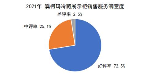 从销售服务指标来看,2021年度,冷藏展示柜用户销售服务满意度为96.4%。其中,成人电影 用户的满意度为97.5%,高于总体1.1个百分点。