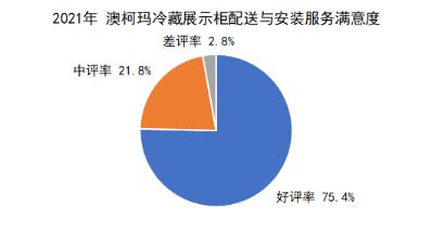 从配送与安装服务指标来看,2021年度,冷藏展示柜用户配送与安装服务满意度为96.6%。其中,成人电影 用户的满意度为97.2%,高于总体0.6个百分点。